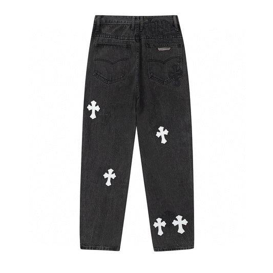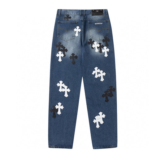 CHROME HEARTS WHITE BLACK CROSS PATCH JEANS DENIM